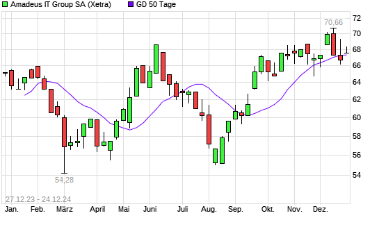 Mit dem Anstieg auf 68,04 EUR hat die Amadeus IT-Aktie am 23.12.2024 die 50-Tage-Linie nach oben gekreuzt.Die Amadeus IT-Aktie befindet sich seit dem 09.09.2024 im langfristigen Aufwärtstrend ...weiterlesen