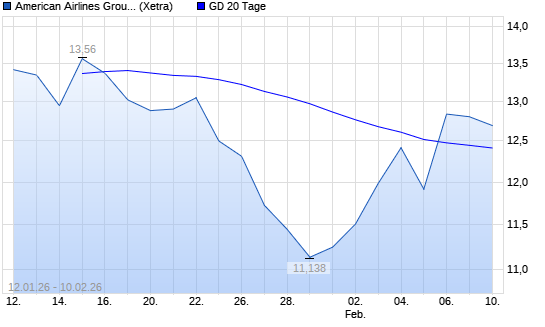 Mit dem Anstieg auf 12,78 EUR hat die American Airlines-Aktie am 09.02.2026 die 20-Tage-Linie nach oben gekreuzt.Die American Airlines-Aktie befindet sich seit dem 19.11.2025 ...weiterlesen