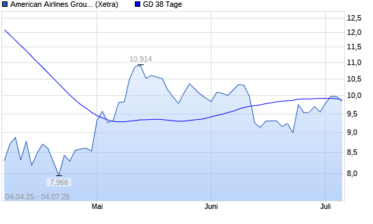 Mit dem Anstieg auf 9,95 EUR hat die American Airlines-Aktie am 03.07.2025 die 38-Tage-Linie nach oben gekreuzt.Die American Airlines-Aktie befindet sich seit dem 06.03.2025 im langfristigen ...weiterlesen
