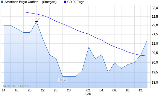 Mit dem Anstieg auf 21,00 EUR hat die American Eagle Outfitters-Aktie am 13.02.2026 die 20-Tage-Linie nach oben gekreuzt.Die American Eagle Outfitters-Aktie befindet sich seit ...weiterlesen