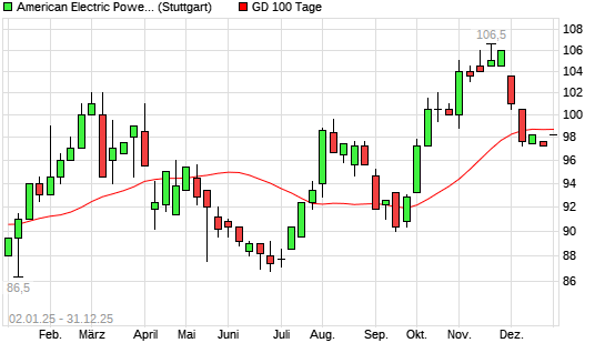 Mit dem Rücksetzer auf 98,20 EUR hat die American Electric Power-Aktie am 30.12.2025 die 100-Tage-Linie nach unten gekreuzt.Die American Electric Power-Aktie befindet sich seit ...weiterlesen