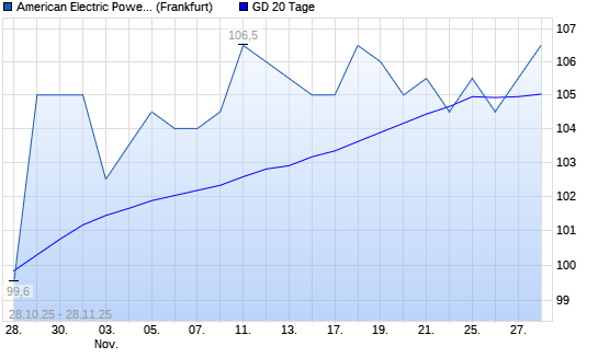 Mit dem Anstieg auf 105,50 EUR hat die American Electric Power-Aktie am 27.11.2025 die 20-Tage-Linie nach oben gekreuzt.Die American Electric Power-Aktie befindet sich seit dem ...weiterlesen