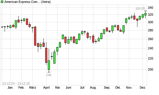 Mit dem Anstieg auf 328,05 EUR hat die American Express-Aktie (ISIN US0258161092) am 12.12.2025 ein neues All-Time-High erreicht und damit den Kurs vom 11.12.2025 eingestellt.Die American Express-Aktie ...weiterlesen