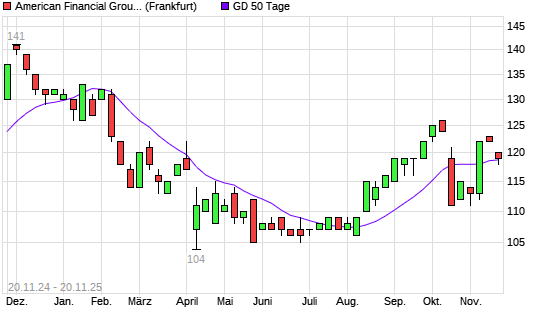 Mit dem Anstieg auf 119,00 EUR hat die American Financial Group-Aktie am 19.11.2025 die 50-Tage-Linie nach oben gekreuzt.Die American Financial Group-Aktie befindet sich seit dem 06.11.2025 ...weiterlesen