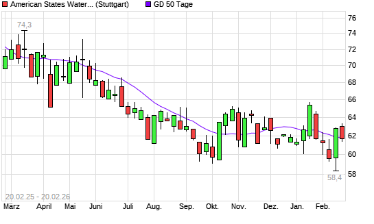 Mit dem Rücksetzer auf 61,65 EUR hat die American States Water-Aktie am 19.02.2026 die 50-Tage-Linie nach unten gekreuzt.Die American States Water-Aktie befindet sich seit ...weiterlesen