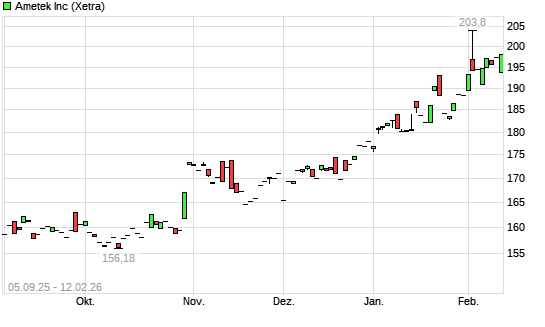 Mit dem Anstieg auf 197,80 EUR hat die Ametek-Aktie (ISIN US0311001004) am 11.02.2026 ein neues All-Time-High erreicht und damit den Kurs vom 06.02.2026 eingestellt.Die Ametek-Aktie befindet ...weiterlesen