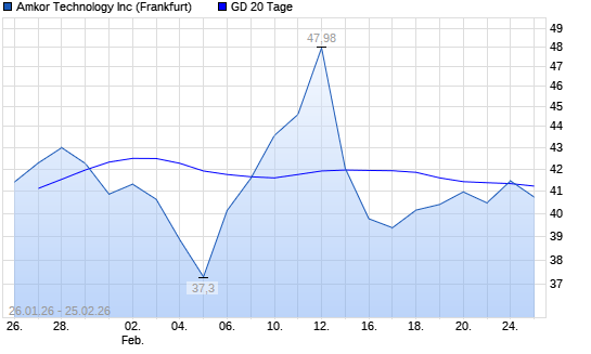 Mit dem Anstieg auf 41,45 EUR hat die Amkor-Aktie am 24.02.2026 die 20-Tage-Linie nach oben gekreuzt.Die Amkor-Aktie befindet sich seit dem 25.08.2025 im langfristigen Aufwärtstrend ...weiterlesen