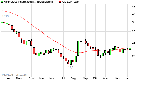 Mit dem Anstieg auf 23,12 EUR hat die Amphastar Pharmaceuticals-Aktie am 07.01.2026 die 100-Tage-Linie nach oben gekreuzt.Die Amphastar Pharmaceuticals-Aktie befindet sich seit dem 19.12.2025 ...weiterlesen