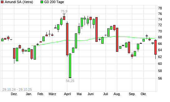 Mit dem Anstieg auf 68,35 EUR hat die Amundi-Aktie am 28.10.2025 die 200-Tage-Linie nach oben gekreuzt.Die Amundi-Aktie befand sich seit dem 13.10.2025 im langfristigen Abwärtstrend und hat ...weiterlesen