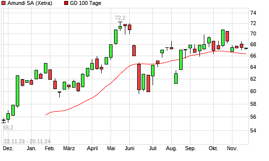 Mit dem Anstieg auf 67,20 EUR hat die Amundi-Aktie am 21.11.2024 die 100-Tage-Linie nach oben gekreuzt.Die Amundi-Aktie befindet sich seit dem 12.08.2024 im langfristigen Aufwärtstrend und hat ...weiterlesen
