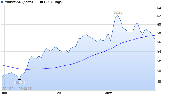 Mit dem Rücksetzer auf 56,95 EUR hat die Andritz-Aktie am 27.03.2025 die 38-Tage-Linie nach unten gekreuzt.Die Andritz-Aktie befindet sich seit dem 28.02.2025 im ...weiterlesen