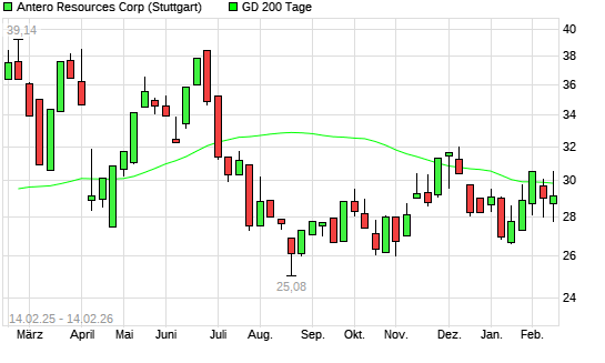 Mit dem Rücksetzer auf 27,91 EUR hat die Antero Resources-Aktie am 13.02.2026 die 200-Tage-Linie nach unten gekreuzt.Die Antero Resources-Aktie befand sich seit dem 12.02.2026 ...weiterlesen