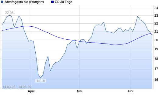 Mit dem Anstieg auf 21,15 EUR hat die Antofagasta-Aktie am 13.06.2025 die 38-Tage-Linie nach oben gekreuzt.Die Antofagasta-Aktie befindet sich seit dem 26.05.2025 im langfristigen Aufwärtstrend ...weiterlesen