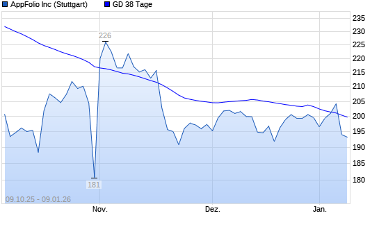 Mit dem Rücksetzer auf 191,80 EUR hat die AppFolio-Aktie am 08.01.2026 die 38-Tage-Linie nach unten gekreuzt.Die AppFolio-Aktie befindet sich seit dem 18.11.2025 im langfristigen Abwärtstrend ...weiterlesen
