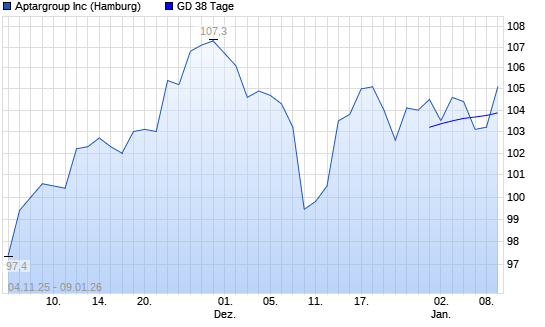 Mit dem Anstieg auf 105,80 EUR hat die AptarGroup-Aktie am 08.01.2026 die 38-Tage-Linie nach oben gekreuzt.Die AptarGroup-Aktie befindet sich seit dem 10.02.2025 im langfristigen Abwärtstrend ...weiterlesen