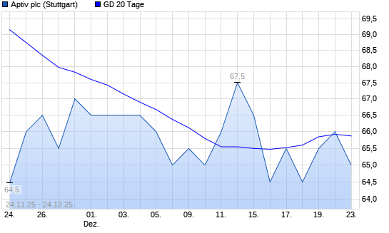 Mit dem Rücksetzer auf 65,00 EUR hat die Aptiv-Aktie am 23.12.2025 die 20-Tage-Linie nach unten gekreuzt.Die Aptiv-Aktie befindet sich seit dem 24.11.2025 im ...weiterlesen
