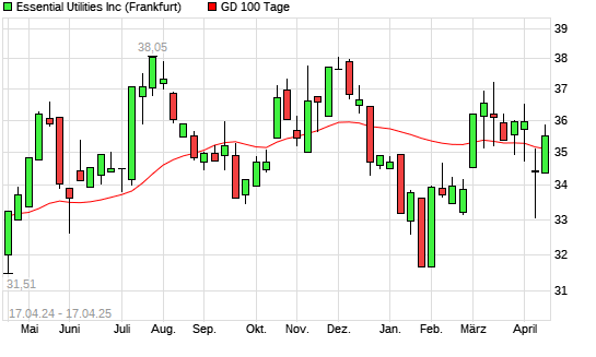 Mit dem Rücksetzer auf 34,86 EUR hat die Aqua America-Aktie am 16.04.2025 die 100-Tage-Linie nach unten gekreuzt.Die Aqua America-Aktie befindet sich seit dem 07.04.2025 im langfristigen ...weiterlesen