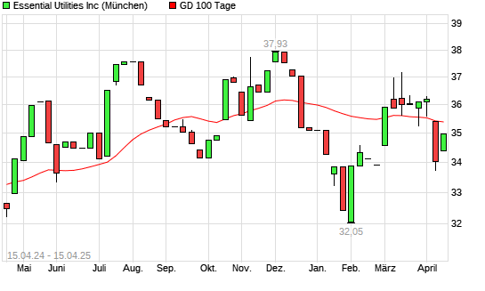 Mit dem Anstieg auf 35,15 EUR hat die Aqua America-Aktie am 14.04.2025 die 100-Tage-Linie nach oben gekreuzt.Die Aqua America-Aktie befindet sich seit dem 07.04.2025 im langfristigen Abwärtstrend ...weiterlesen