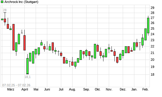 Mit dem Anstieg auf 25,40 EUR hat die Archrock-Aktie (ISIN US03957W1062) am 06.02.2026 ein neues 6-Monats-Hoch erreicht und damit den Kurs vom 05.02.2026 eingestellt.Die ...weiterlesen
