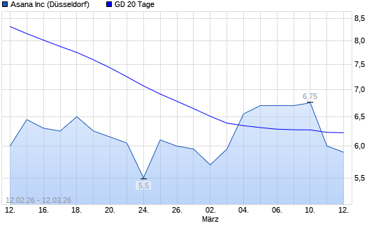 Mit dem Rücksetzer auf 6,05 EUR hat die Asana-Aktie am 11.03.2026 die 20-Tage-Linie nach unten gekreuzt.Die Asana-Aktie befindet sich seit dem 16.12.2025 im langfristigen ...weiterlesen