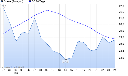 Mit dem Rücksetzer auf 19,10 EUR hat die Asana-Aktie am 23.01.2025 die 20-Tage-Linie nach unten gekreuzt.Die Asana-Aktie befindet sich seit dem 20.11.2024 im langfristigen Aufwärtstrend ...weiterlesen