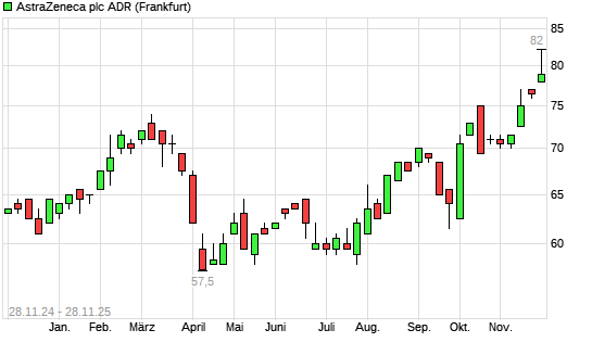 Mit dem Anstieg auf 82,00 EUR hat die Astrazeneca ADR-Aktie (ISIN US0463531089) am 27.11.2025 ein neues All-Time-High erreicht und damit den Kurs vom 25.11.2025 eingestellt.Die Astrazeneca ADR-Aktie ...weiterlesen