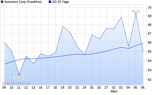 Mit dem Rücksetzer auf 64,95 EUR hat die Astronics-Aktie am 06.03.2026 die 20-Tage-Linie nach unten gekreuzt.Der Abstand zur 200-Tage-Linie beträgt aktuell +54,14%. ...weiterlesen