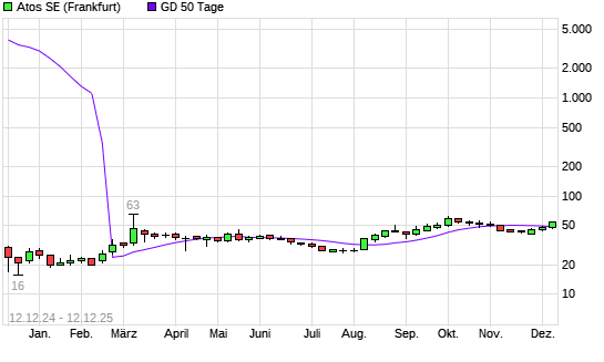 Mit dem Anstieg auf 49,62 EUR hat die Atos-Aktie am 11.12.2025 die 50-Tage-Linie nach oben gekreuzt.Die Atos-Aktie befindet sich seit dem 04.08.2025 im langfristigen Aufwärtstrend und ...weiterlesen