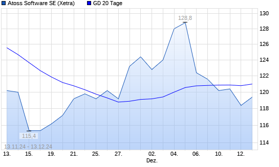 Mit dem Rücksetzer auf 119,20 EUR hat die Atoss Software-Aktie am 12.12.2024 die 20-Tage-Linie nach unten gekreuzt.Die Atoss Software-Aktie befindet sich seit dem 06.12.2024 im langfristigen ...weiterlesen