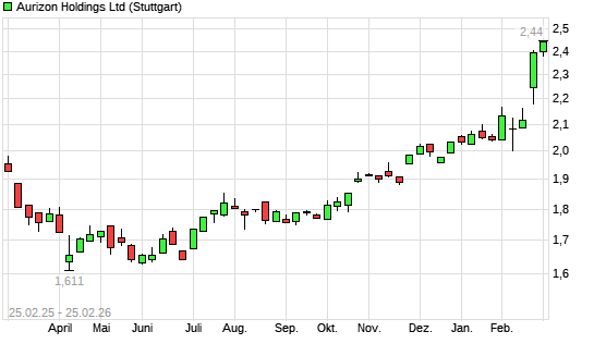 Mit dem Anstieg auf 2,38 EUR hat die Aurizon-Aktie (ISIN AU000000AZJ1) am 24.02.2026 ein neues 12-Monats-Hoch erreicht und damit den Kurs vom 19.02.2026 eingestellt.Die ...weiterlesen
