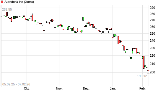 Mit dem Rücksetzer auf 200,00 EUR hat die Autodesk-Aktie (ISIN US0527691069) am 06.02.2026 ein neues 12-Monats-Tief erreicht und damit den Kurs vom 03.02.2026 eingestellt.Die Autodesk-Aktie ...weiterlesen