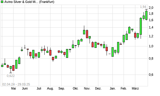 Mit dem Anstieg auf 1,89 EUR hat die Avino Silver & Gold Mines-Aktie (ISIN CA0539061030) am 28.03.2025 ein neues 5-Jahres-Hoch erreicht und damit den Kurs vom 27.03.2025 eingestellt.Die Avino ...weiterlesen