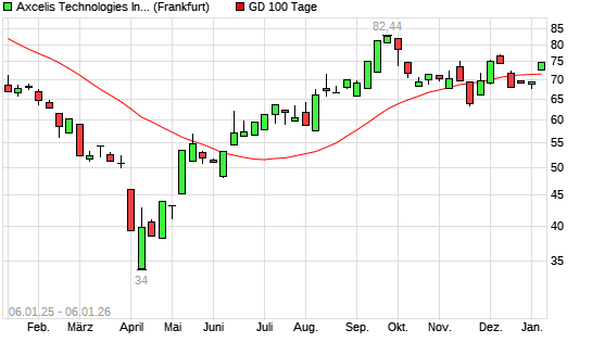 Mit dem Anstieg auf 73,64 EUR hat die Axcelis Technologies-Aktie am 05.01.2026 die 100-Tage-Linie nach oben gekreuzt.Die Axcelis Technologies-Aktie befindet sich seit dem 05.08.2025 im langfristigen ...weiterlesen