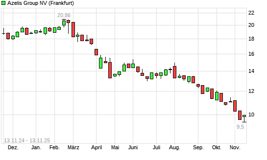 Mit dem Rücksetzer auf 9,60 EUR hat die Azelis Group N.V-Aktie (ISIN BE0974400328) am 12.11.2025 ein neues All-Time-Low erreicht und damit den Kurs vom 07.11.2025 eingestellt.Die Azelis ...weiterlesen