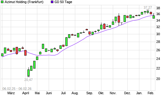 Mit dem Rücksetzer auf 35,57 EUR hat die Azimut Holding-Aktie am 05.02.2026 die 50-Tage-Linie nach unten gekreuzt.Die Azimut Holding-Aktie befindet sich seit dem 28.04.2025 im langfristigen ...weiterlesen