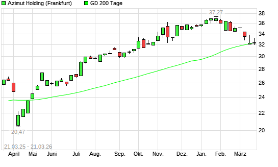 Mit dem Rücksetzer auf 32,43 EUR hat die Azimut Holding-Aktie am 20.03.2026 die 200-Tage-Linie nach unten gekreuzt.Die Azimut Holding-Aktie befand sich seit dem 18.03.2026 ...weiterlesen