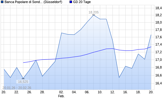 Mit dem Rücksetzer auf 17,34 EUR hat die BCA Pop di Sondrio-Aktie am 19.02.2026 die 20-Tage-Linie nach unten gekreuzt.Die BCA Pop di Sondrio-Aktie befindet sich seit dem 05.11.2024 ...weiterlesen