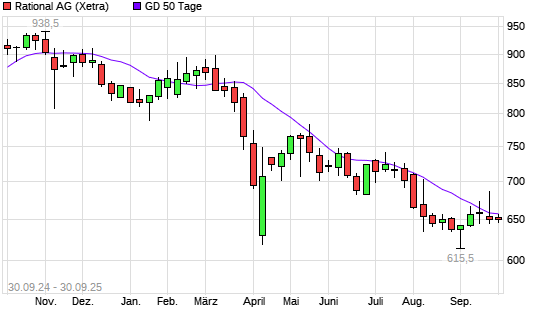 Mit dem Rücksetzer auf 648,50 EUR hat die Rational-Aktie am 29.09.2025 die 50-Tage-Linie nach unten gekreuzt.Die Rational-Aktie befindet sich seit dem 07.03.2025 im langfristigen Abwärtstrend ...weiterlesen