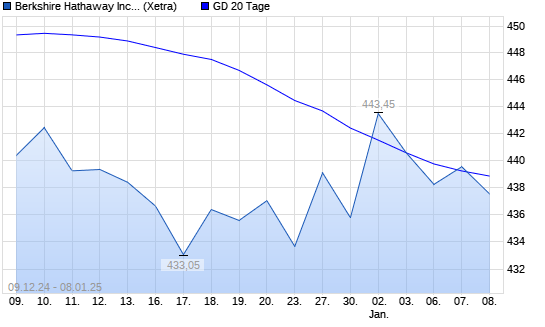 Mit dem Anstieg auf 438,75 EUR hat die Berkshire Hathaway B-Aktie am 07.01.2025 die 20-Tage-Linie nach oben gekreuzt.Die Berkshire Hathaway B-Aktie befindet sich seit dem 14.04.2023 im langfristigen ...weiterlesen