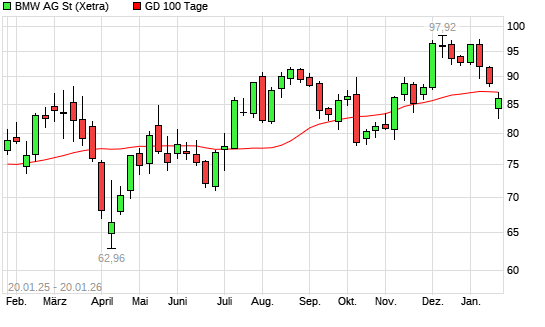 Mit dem Rücksetzer auf 82,74 EUR hat die BMW St-Aktie am 03.03.2026 die 200-Tage-Linie nach unten gekreuzt.Die BMW St-Aktie befand sich seit dem 05.11.2025 im ...weiterlesen