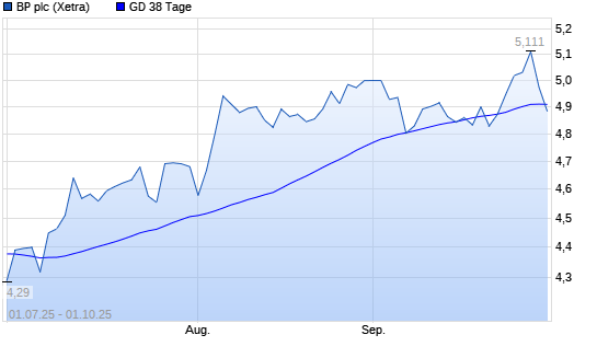 Mit dem Rücksetzer auf 4,90 EUR hat die BP-Aktie am 30.09.2025 die 38-Tage-Linie nach unten gekreuzt.Die BP-Aktie befindet sich seit dem 04.08.2025 im langfristigen Aufwärtstrend und hat ...weiterlesen