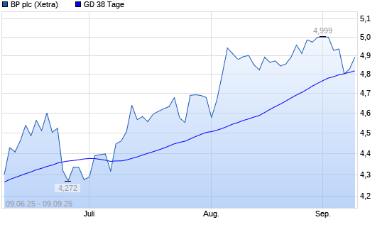 Mit dem Rücksetzer auf 4,80 EUR hat die BP-Aktie am 08.09.2025 die 38-Tage-Linie nach unten gekreuzt.Die BP-Aktie befindet sich seit dem 04.08.2025 im langfristigen Aufwärtstrend und hat ...weiterlesen