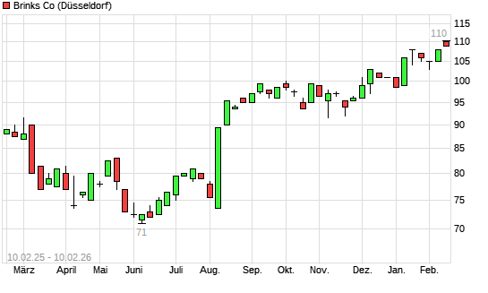 Mit dem Anstieg auf 110,00 EUR hat die BRINKS CO-Aktie (ISIN US1096961040) am 09.02.2026 ein neues All-Time-High erreicht und damit den Kurs vom 12.01.2026 eingestellt.Die BRINKS ...weiterlesen