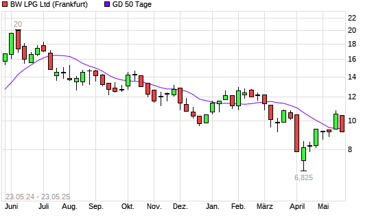 Mit dem Rücksetzer auf 9,28 EUR hat die BW LPG-Aktie am 22.05.2025 die 50-Tage-Linie nach unten gekreuzt.Die BW LPG-Aktie befindet sich seit dem 15.10.2024 im langfristigen Abwärtstrend ...weiterlesen