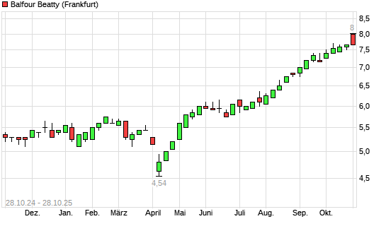 Mit dem Anstieg auf 7,95 EUR hat die Balfour Beatty-Aktie (ISIN GB0000961622) am 27.10.2025 ein neues All-Time-High erreicht und damit den Kurs vom 24.10.2025 eingestellt.Die Balfour Beatty-Aktie ...weiterlesen