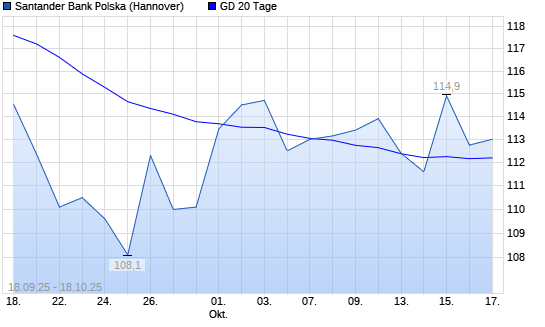 Mit dem Rücksetzer auf 112,00 EUR hat die Bank Zachodni-Aktie am 17.10.2025 die 20-Tage-Linie nach unten gekreuzt.Die Bank Zachodni-Aktie befindet sich seit dem 29.08.2025 im langfristigen ...weiterlesen