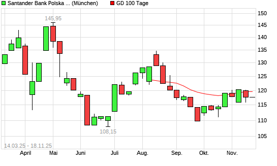 Mit dem Rücksetzer auf 114,20 EUR hat die Bank Zachodni-Aktie am 17.11.2025 die 100-Tage-Linie nach unten gekreuzt.Die Bank Zachodni-Aktie befindet sich seit dem 29.08.2025 ...weiterlesen