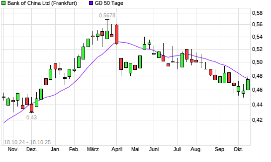 Mit dem Rücksetzer auf 0,47 EUR hat die Bank of China-Aktie am 17.10.2025 die 50-Tage-Linie nach unten gekreuzt.Die Bank of China-Aktie befindet sich seit dem 08.08.2025 im langfristigen ...weiterlesen