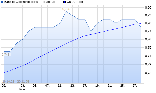 Mit dem Rücksetzer auf 0,77 EUR hat die Bank of Communications-Aktie am 28.11.2025 die 20-Tage-Linie nach unten gekreuzt.Die Bank of Communications-Aktie befindet sich seit dem 04.11.2025 ...weiterlesen