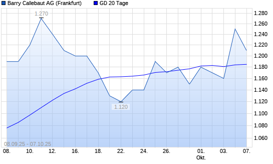Mit dem Anstieg auf 1.250,00 EUR hat die Barry Callebaut-Aktie am 06.10.2025 die 20-Tage-Linie nach oben gekreuzt.Die Barry Callebaut-Aktie befindet sich seit dem 22.08.2025 im langfristigen ...weiterlesen